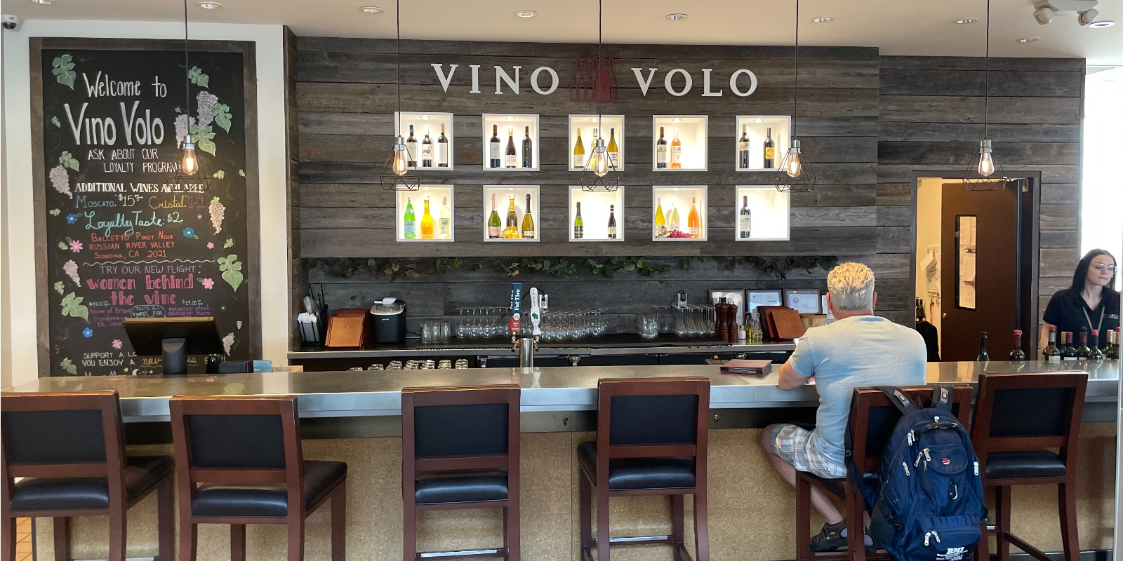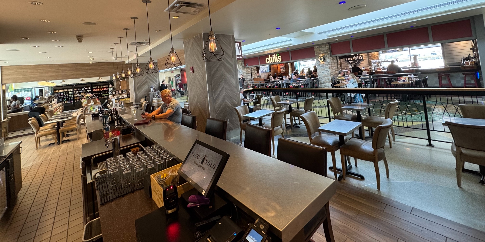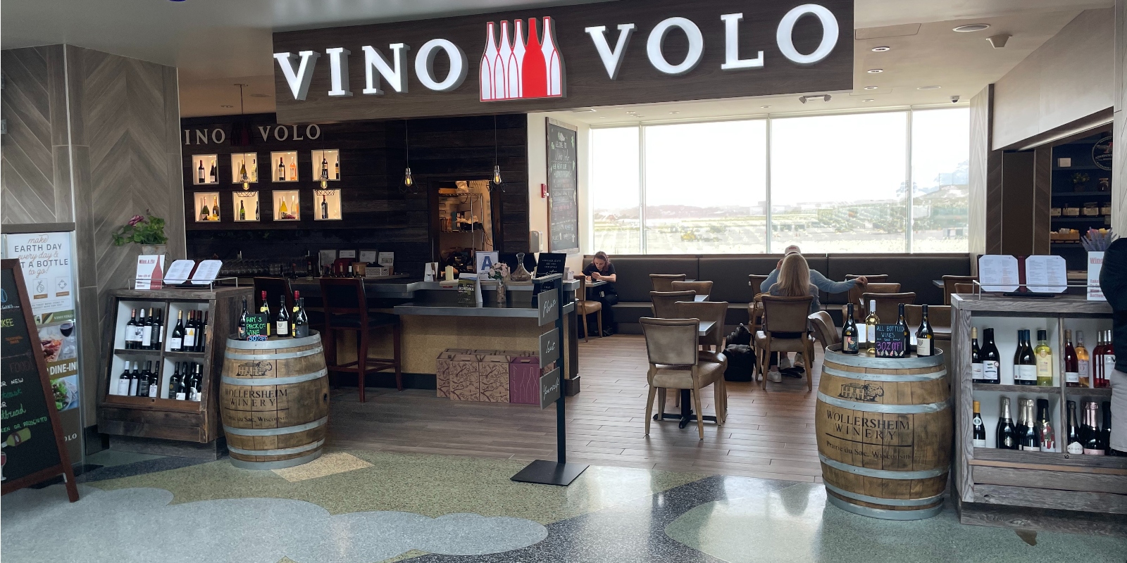 Vino Volo serves hand-selected wines from across the globe to thirsty travelers, along with gourmet food and to-go bottles of wine to take home.