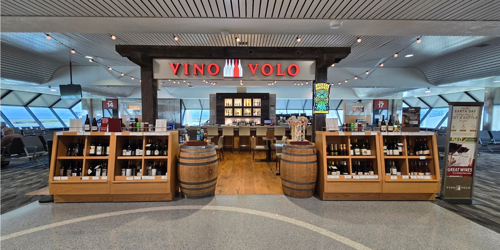 Vino Volo serves hand-selected wines from across the globe to thirsty travelers, along with gourmet food and to-go bottles of wine to take home.