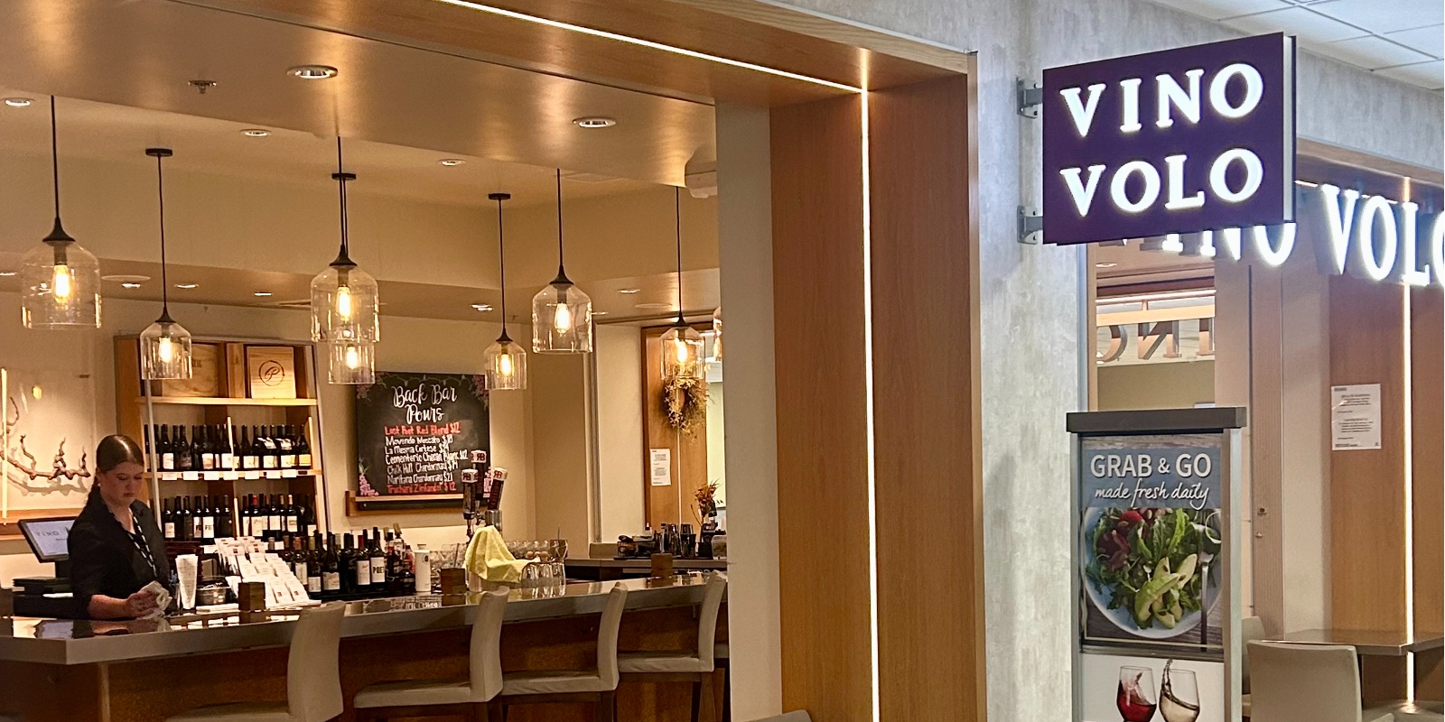 Vino Volo serves hand-selected wines from across the globe to thirsty travelers, along with gourmet food and to-go bottles of wine to take home.