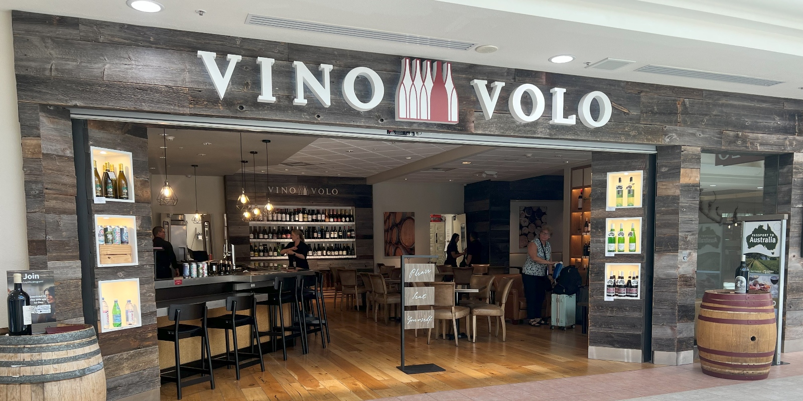 Vino Volo serves hand-selected wines from across the globe to thirsty travelers, along with gourmet food and to-go bottles of wine to take home.