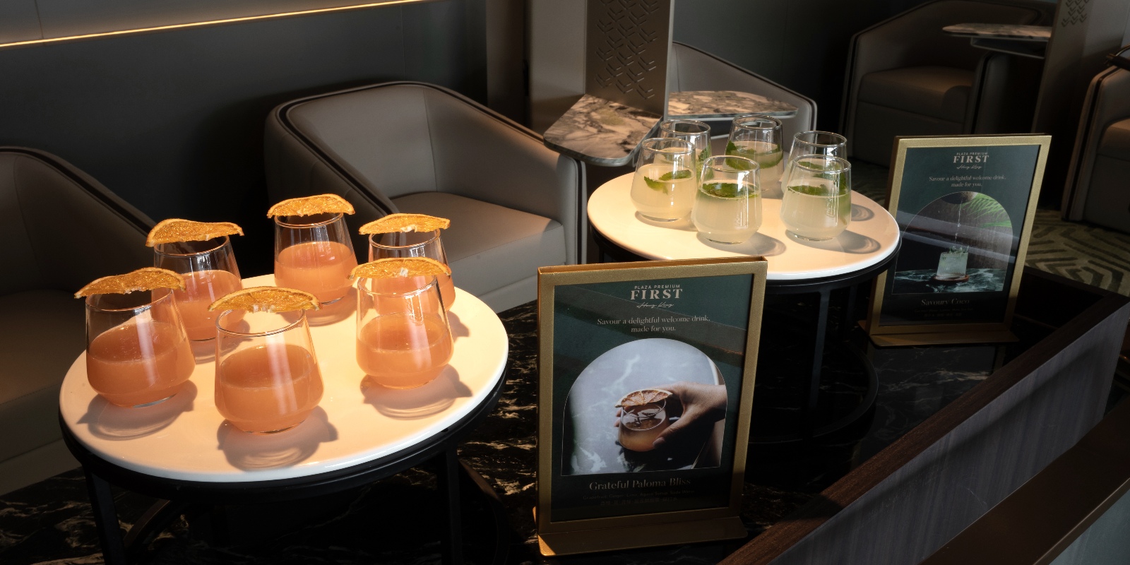 Indulge in a variety of fully certified halal cuisines, ranging from an exquisite semi-buffet to delectable a-la-carte main courses, all inspired by the rich flavours of Southeast Asia. To complement your dining experience, enjoy a selection of complimentary refined spirits, sparkling wines, house wines, cocktails, fresh juices, soft drinks, and an array of teas. Plaza Premium First promises an exclusive and relaxing escape before your journey.